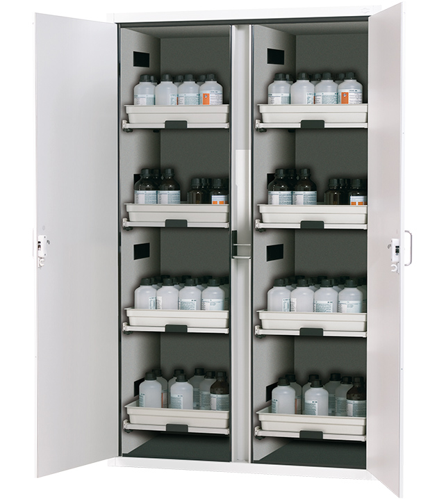 - Zwei in einem: zwei Abteile erlauben die getrennte Lagerung von Säuren und Laugen in einem Schrank