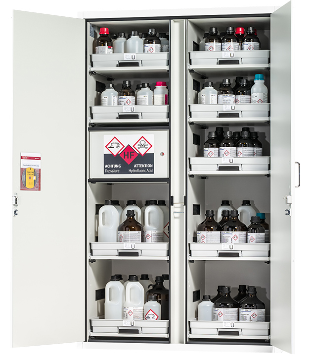 - Zwei in einem: zwei Abteile erlauben die getrennte Lagerung von Säuren und Laugen in einem Schrank