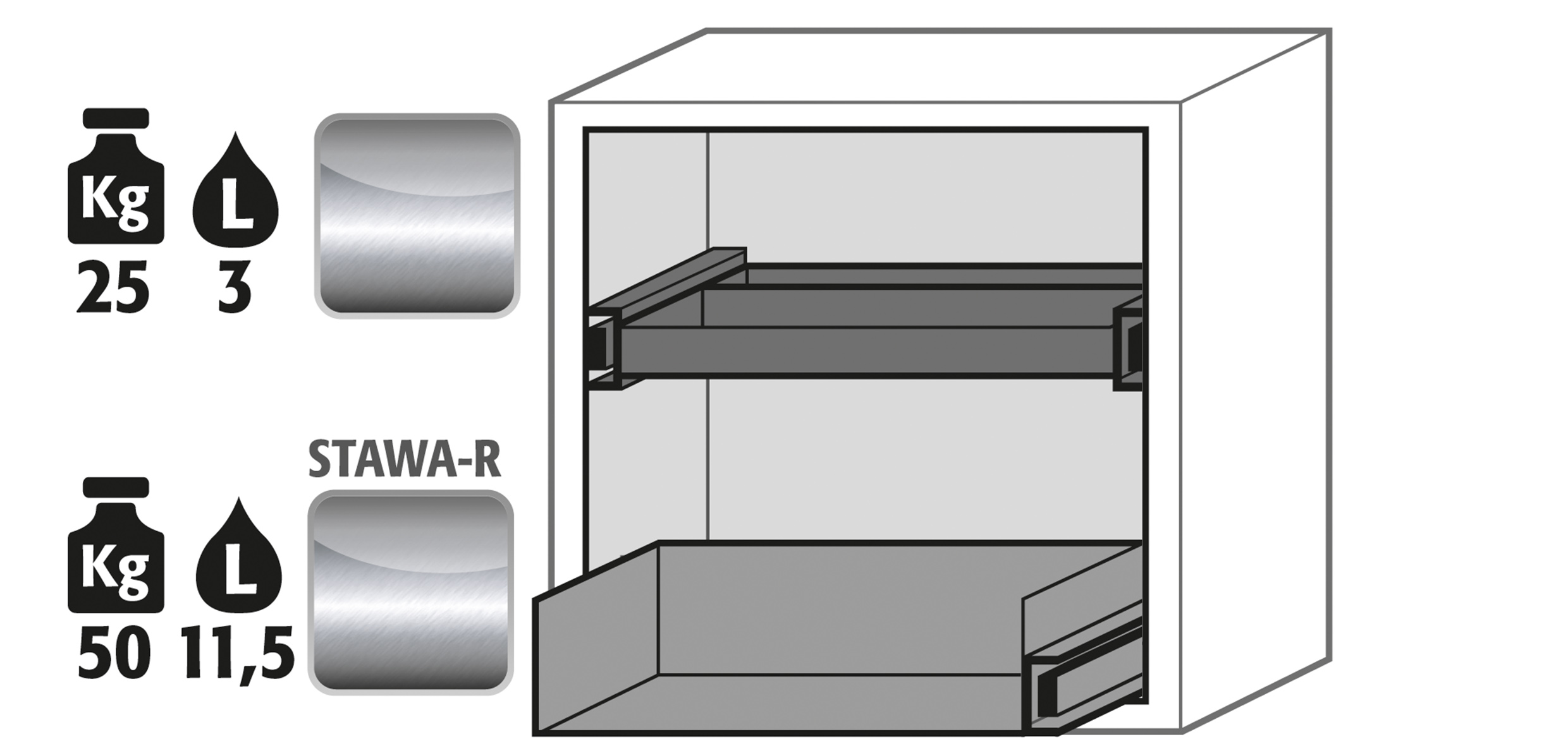 - Sicher: Schublade serienmäßig mit Erdungskabel inkl. Klemme, Wanne geprüft gemäß StawaR, Schublade im Brandfall selbstschließend
