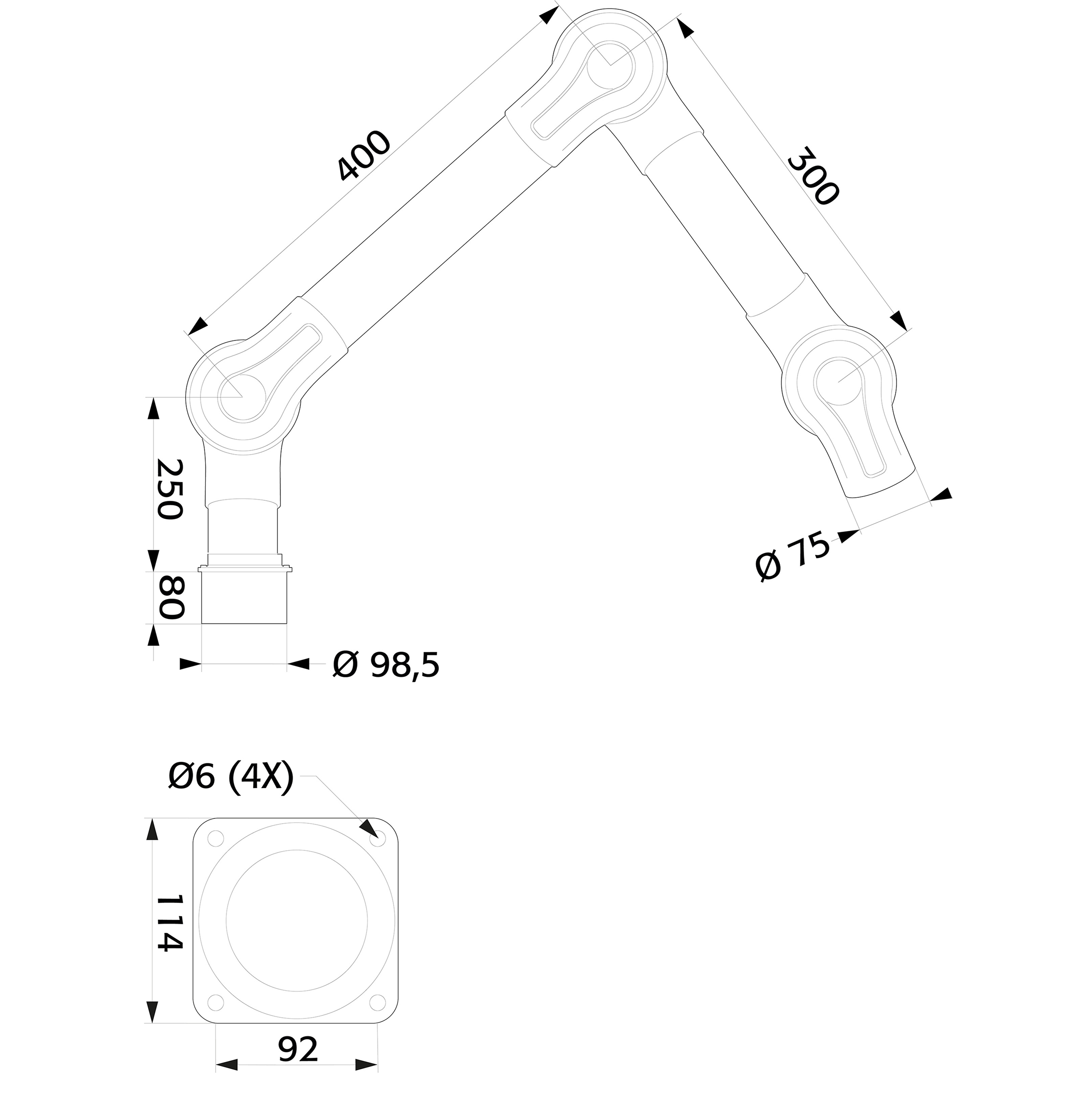 Quellenabsaugungen Labor zur Tischmontage, Länge 1000 mm