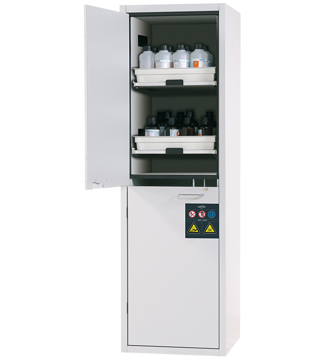 - Zwei in einem: zwei Abteile erlauben die getrennte Lagerung von Säuren und Laugen in einem Schrank