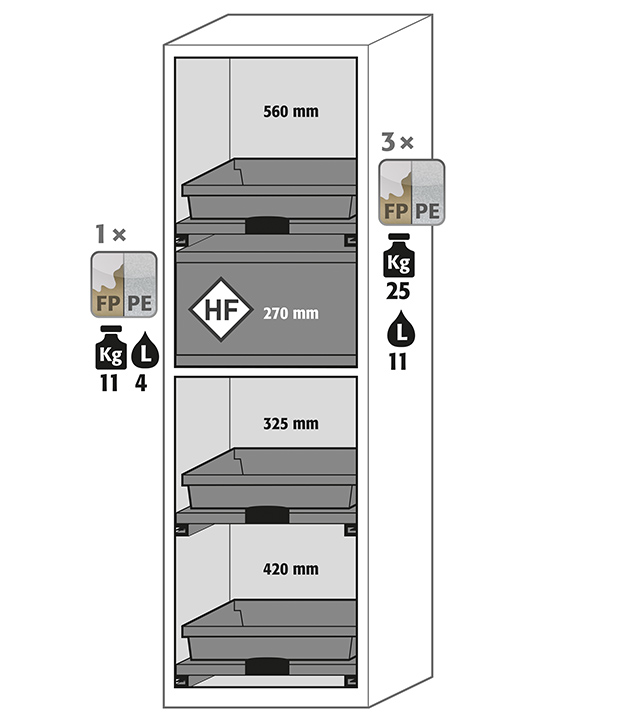 | Traglast Einbaufach Flusssäure | 25 kg |
