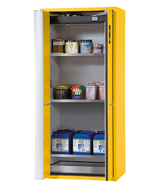 Sicherheitsgelb (RAL 1004), Inneneinrichtung mit 3 x Fachboden, 1 x Bodenauffangwanne (Edelstahl 1.4301)