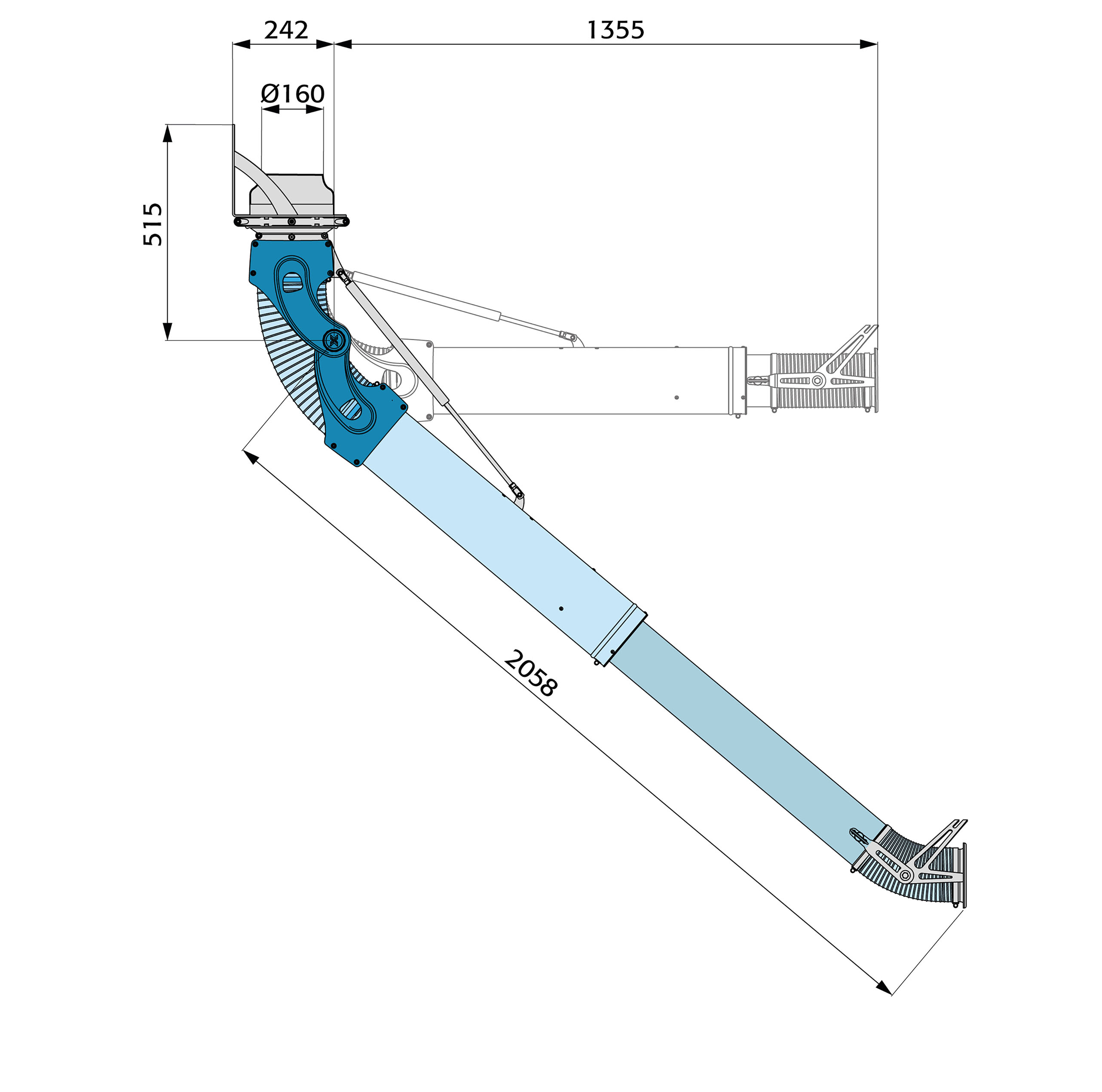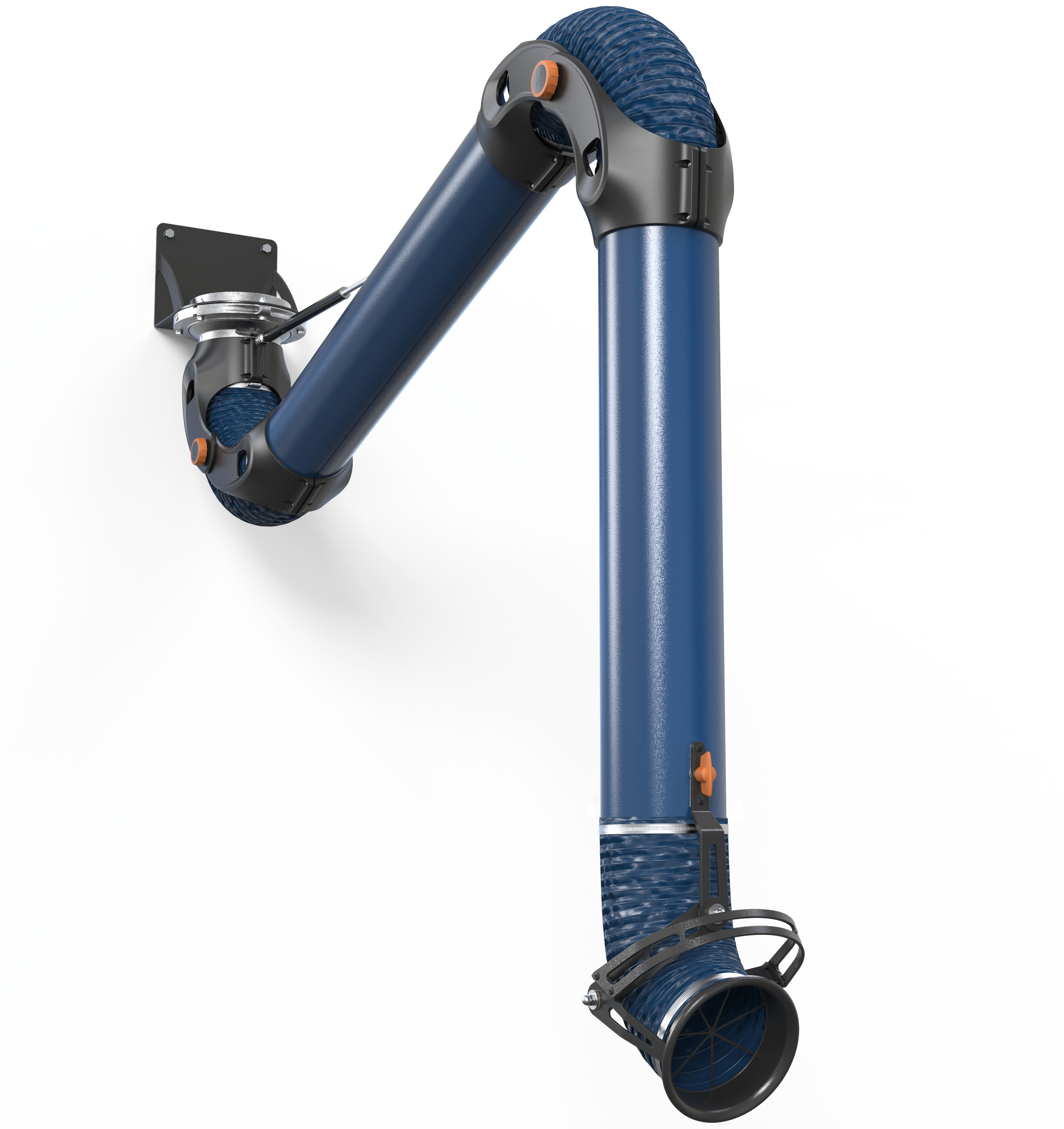 Extrem leicht zu manövrieren und selbst bei komplett ausgefahrenem Arm sehr positionsstabil. Das Eigengewicht des Absaugarms wird durch eine außen montierte Gasdruckfeder ausgeglichen. Die Absaughaube lässt sich in alle Richtungen um 90° anwinkeln, und die Wandhalterung bietet außerdem eine 360°-Drehgelenkfunktion. Der Absauger wird serienmäßig mit manueller Luftklappe und einem Schlauch aus feuerhemmendem PVC geliefert.