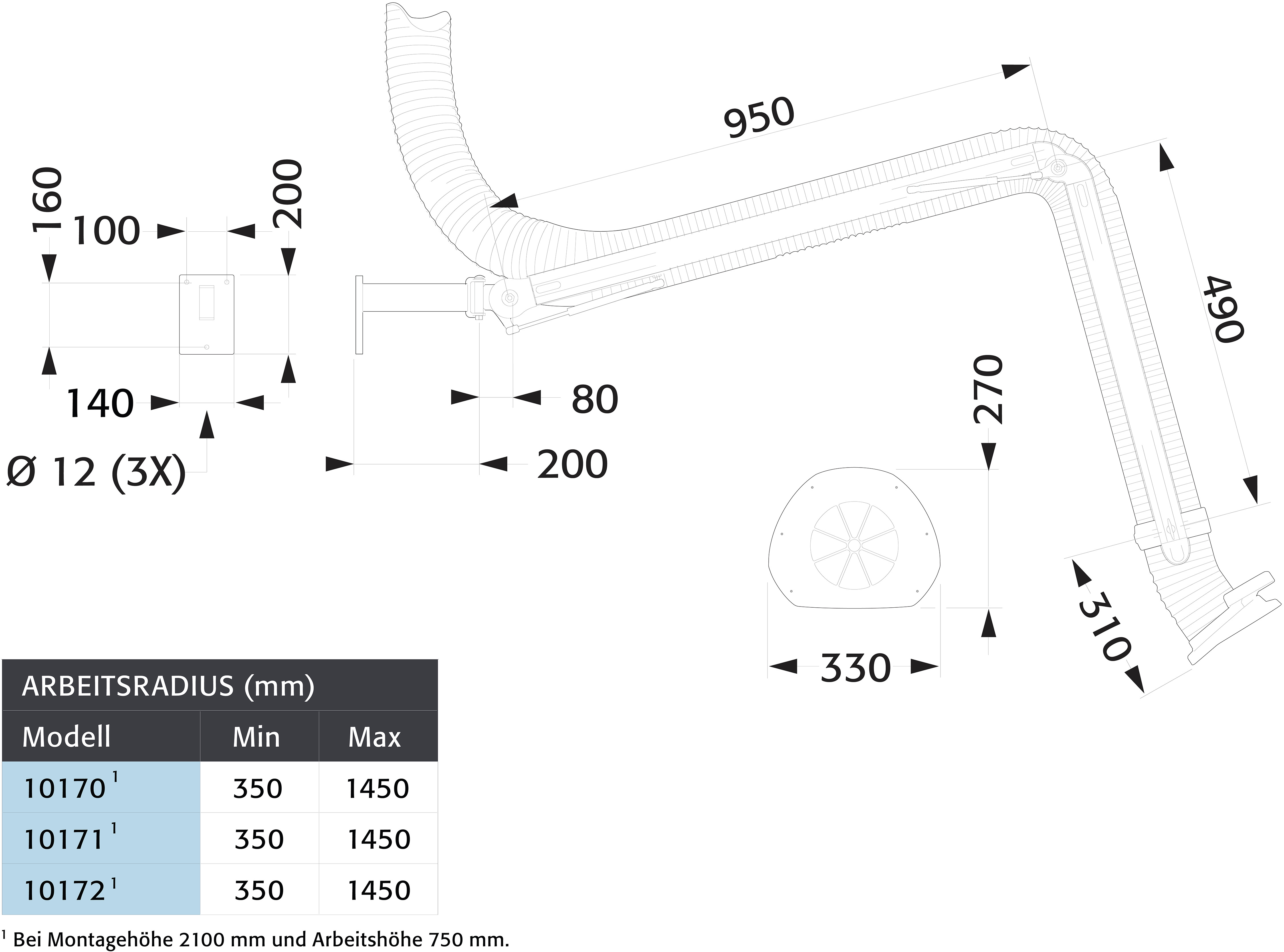 - Außen montierte Tragarme - natürlicher, gerader Verlauf der Abluft