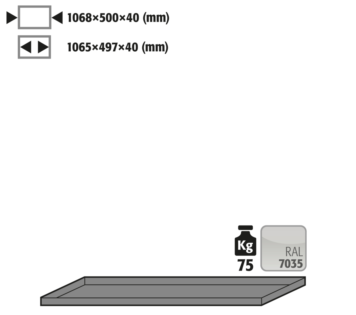 - Dimensions interior: W x D x H (mm) 1065 x 497 x 40