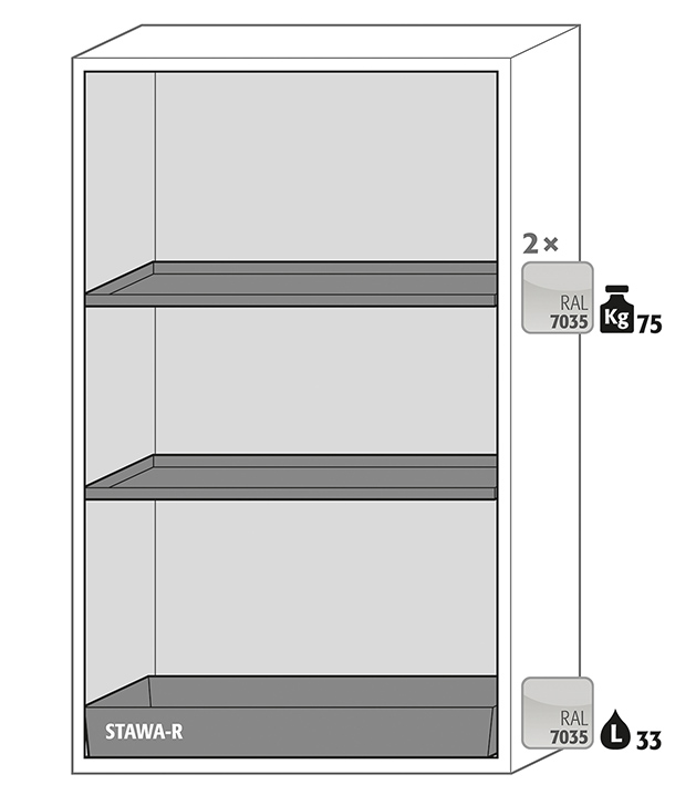 warning yellow (RAL 1004), interior equipment with 2 x shelf, 1 x bottom collecting sump (sheet steel powder-coated)