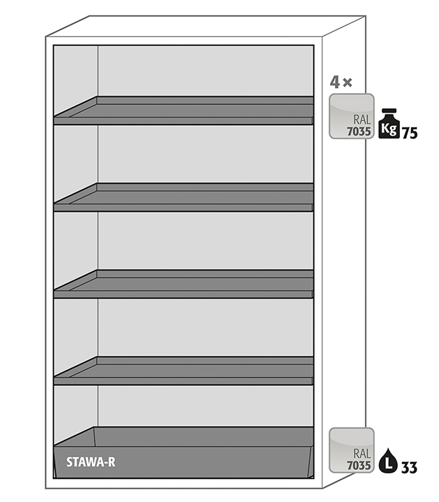 warning yellow (RAL 1004), interior equipment with 4 x shelf, 1 x bottom collecting sump (sheet steel powder-coated)