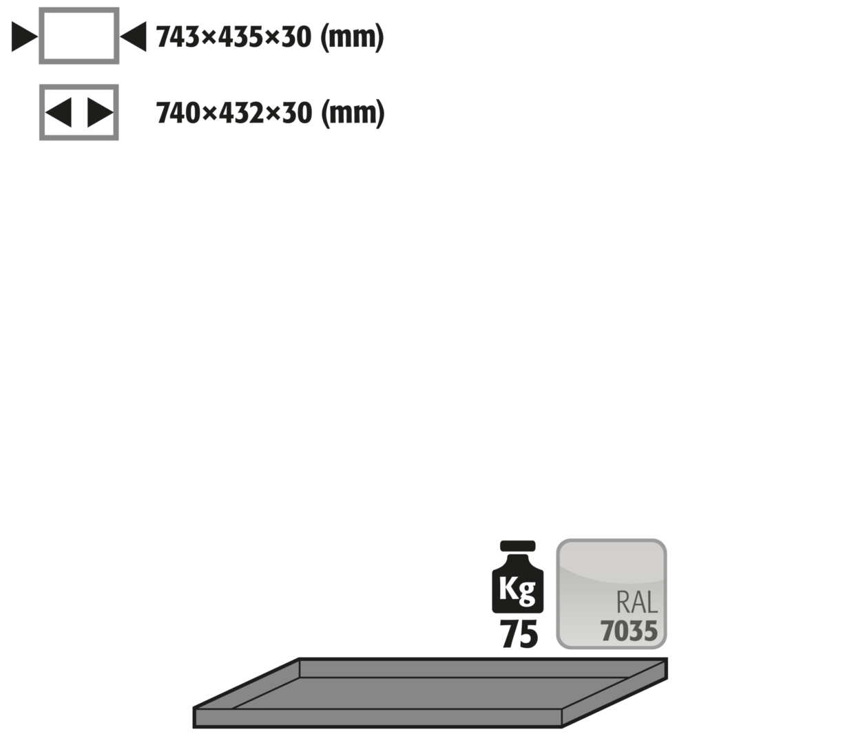 - Dimensions interior: W x D x H (mm) 740 x 432 x 30