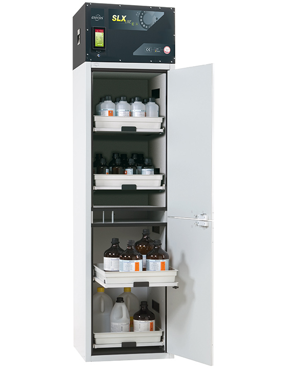 - Two in one: two hermetically separated storage compartments allow the isolated storage of acids and bases in one cabinet