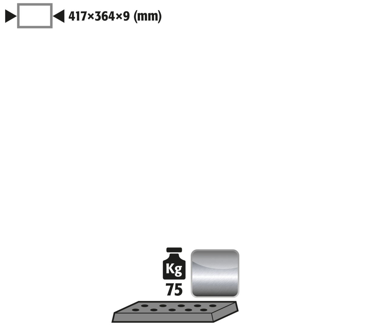 - Dimensions exterior: W x D x H (mm) 417 x 364 x 9