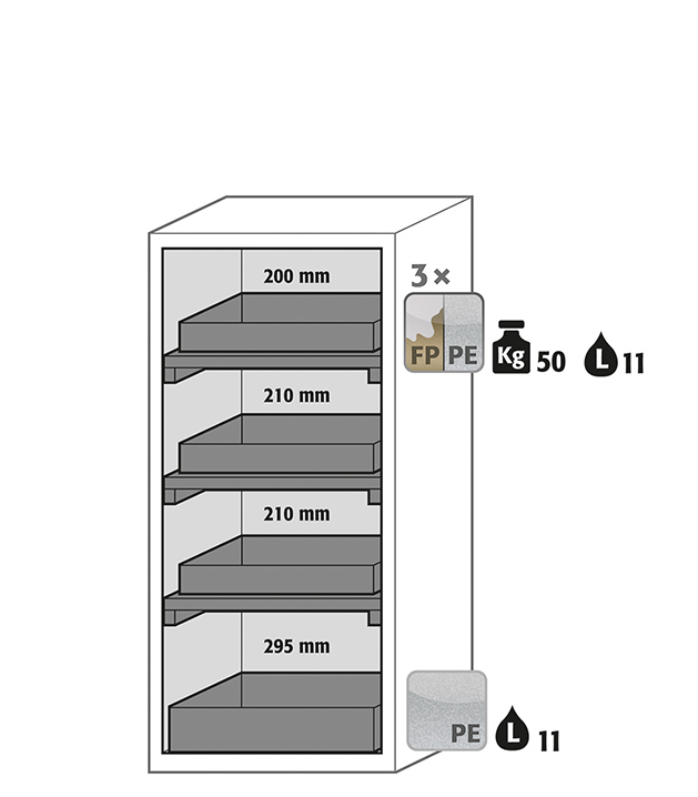 light grey (RAL 7035), interior equipment with 3 x tray shelf, 1 x bottom collecting sump (PP)