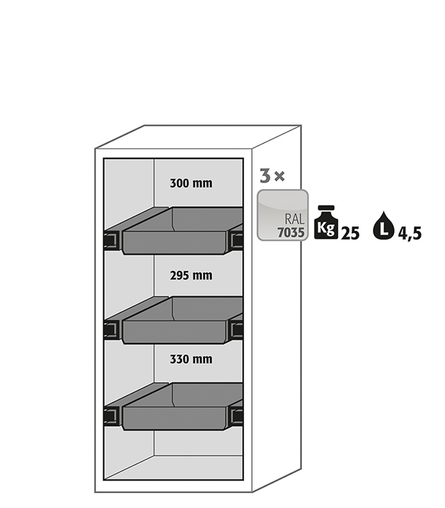 light grey (RAL 7035), interior equipment with 3 x drawer (sheet steel powder-coated)