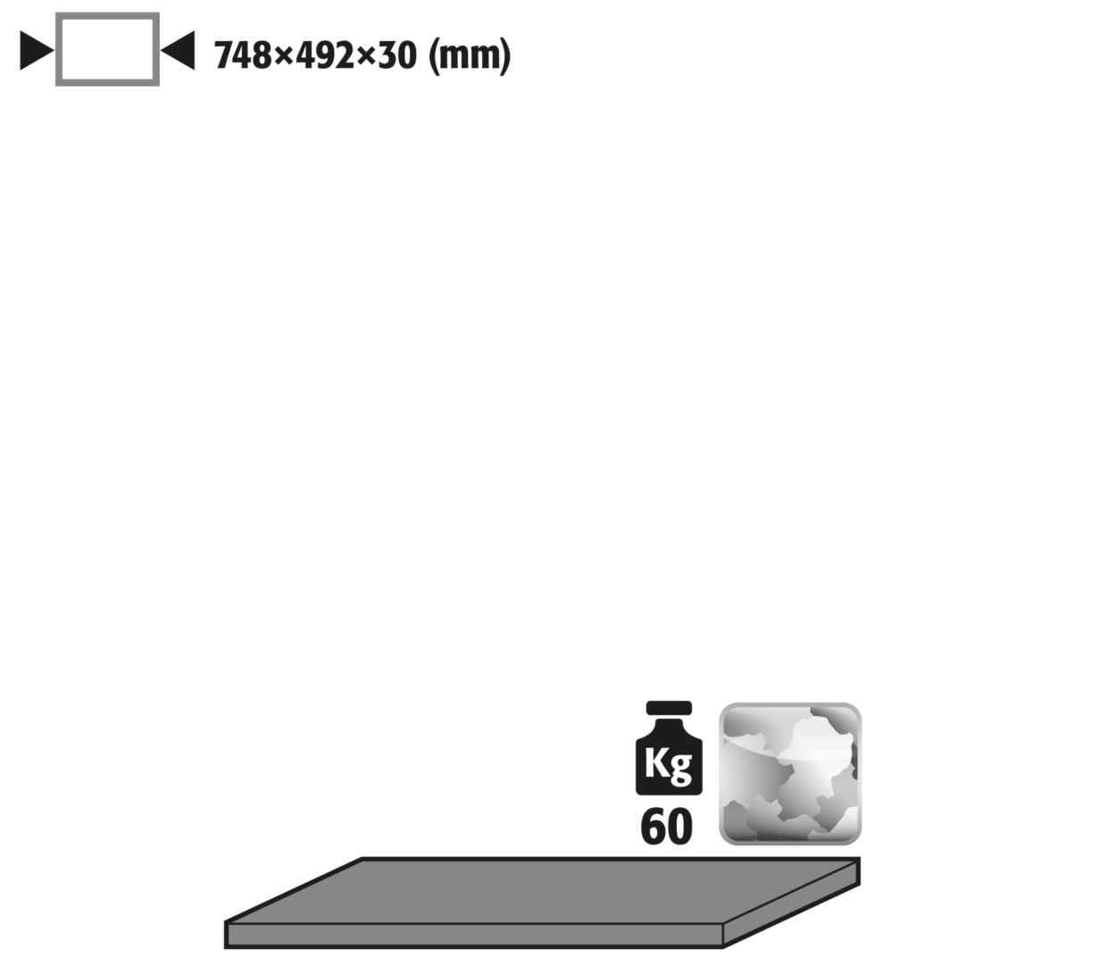 - Dimensions exterior: W x D x H (mm) 748 x 492 x 30