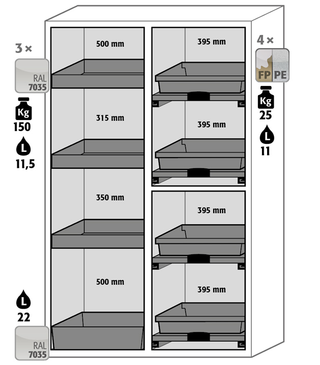 When configuring a safety cabinet, please adhere to the applicable national rules and regulations for the storage of hazardous substances. If you are unsure, the asecos experts will be happy to help you further.