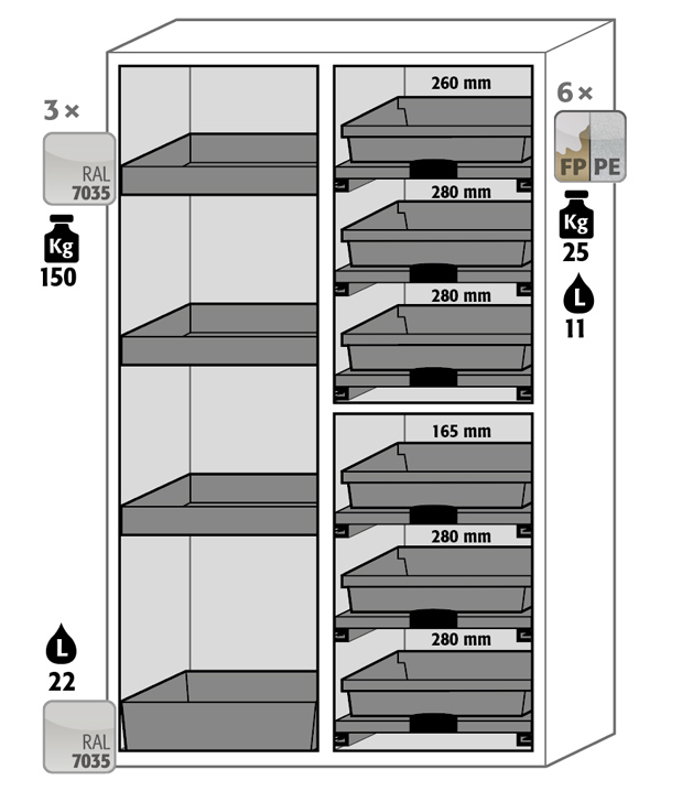 When configuring a safety cabinet, please adhere to the applicable national rules and regulations for the storage of hazardous substances. If you are unsure, the asecos experts will be happy to help you further.