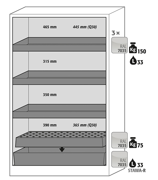 Safety storage cabinet type tested in accordance with EN 14470-1 model Q30.195.116.FU.WDAS