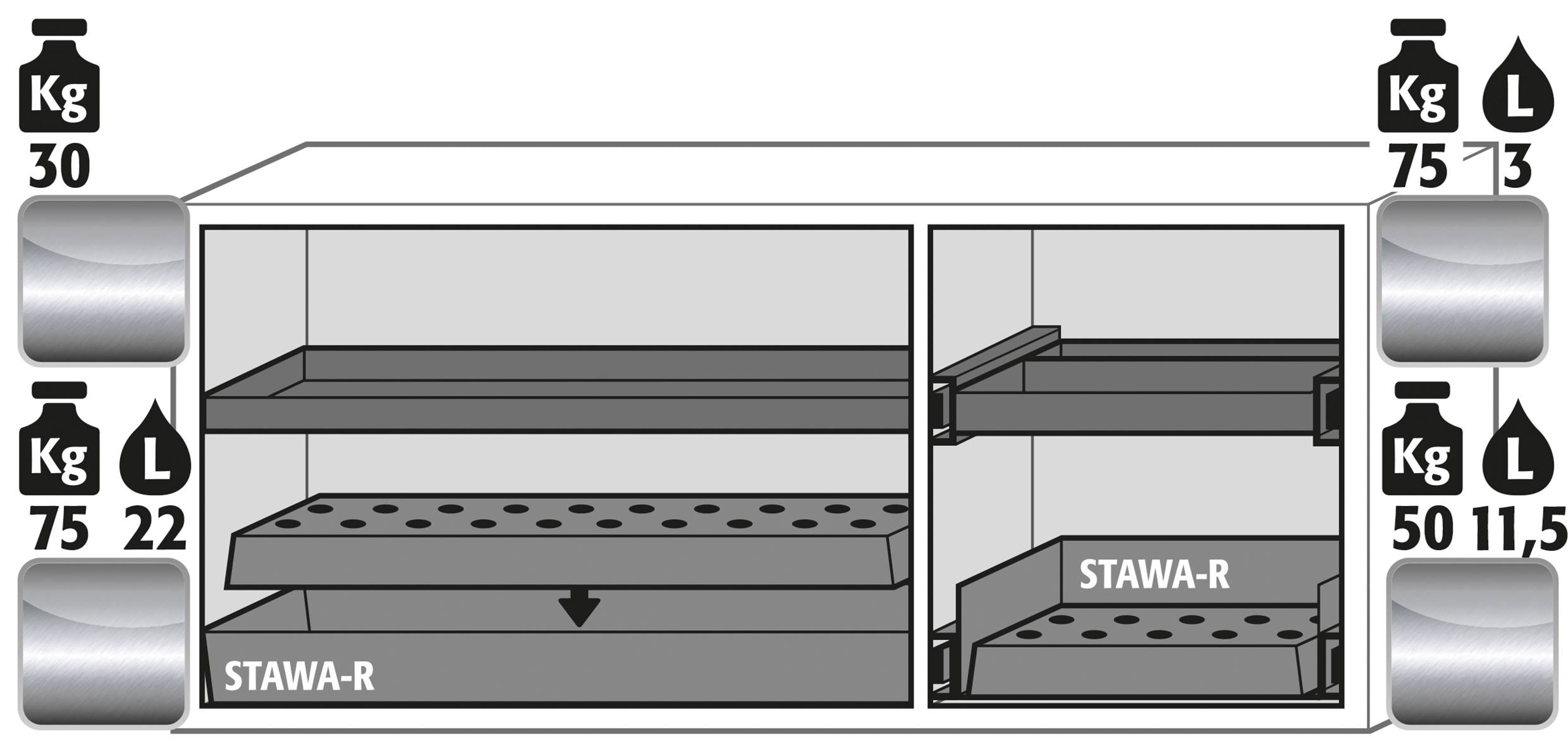 safety storage under bench cabinet type tested in accordance with EN 14470-1 model UB90.060.140.UL.S2T