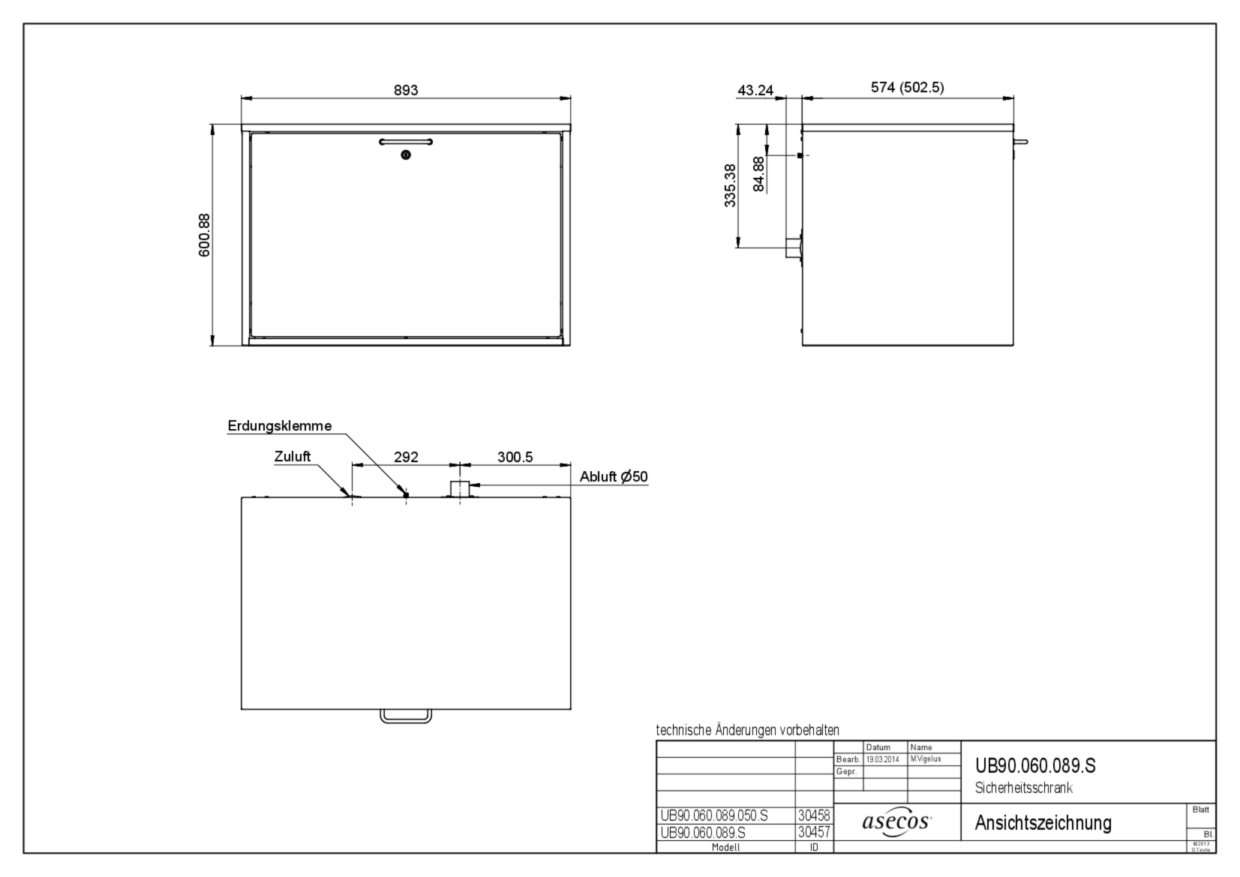 armario bajo de seguridad comprobado en horno de pruebas según EN 14470-1 modelo UB90.060.089.050.UL.S