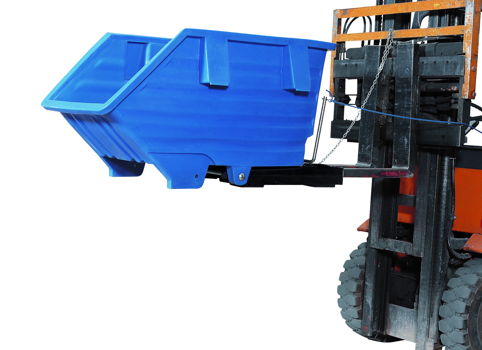 - El mecanismo de seguridad incluido limita el ángulo de vuelco a 90° y protege el contenedor contra posibles daño