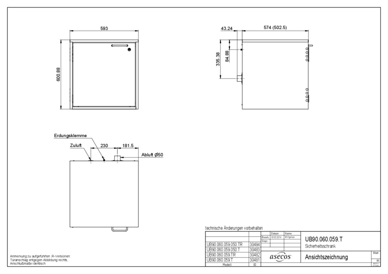 armario bajo de seguridad comprobado en horno de pruebas según EN 14470-1 modelo UB90.060.059.T