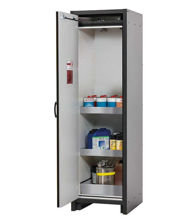 Tenga en cuenta los respectivos reglamentos y normas nacionales vigentes para el almacenamiento de sustancias peligrosas durante la configuración de un armario de seguridad. Si tiene alguna duda, los expertos de asecos le ayudarán encantados.