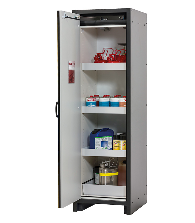 Tenga en cuenta los respectivos reglamentos y normas nacionales vigentes para el almacenamiento de sustancias peligrosas durante la configuración de un armario de seguridad. Si tiene alguna duda, los expertos de asecos le ayudarán encantados.