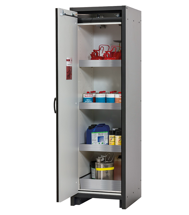 Tenga en cuenta los respectivos reglamentos y normas nacionales vigentes para el almacenamiento de sustancias peligrosas durante la configuración de un armario de seguridad. Si tiene alguna duda, los expertos de asecos le ayudarán encantados.