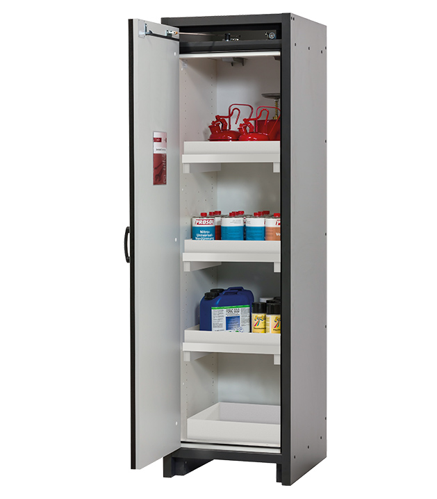 Tenga en cuenta los respectivos reglamentos y normas nacionales vigentes para el almacenamiento de sustancias peligrosas durante la configuración de un armario de seguridad. Si tiene alguna duda, los expertos de asecos le ayudarán encantados.