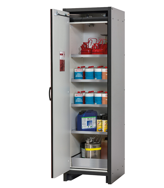 Tenga en cuenta los respectivos reglamentos y normas nacionales vigentes para el almacenamiento de sustancias peligrosas durante la configuración de un armario de seguridad. Si tiene alguna duda, los expertos de asecos le ayudarán encantados.