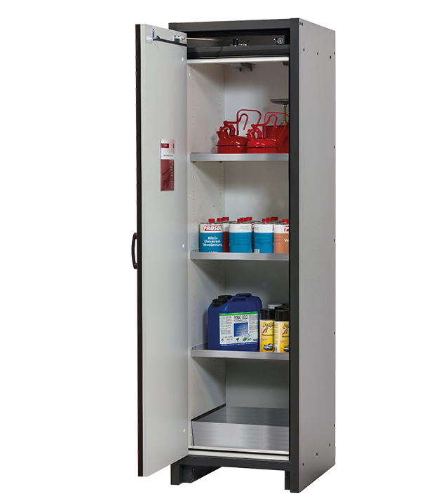 Tenga en cuenta los respectivos reglamentos y normas nacionales vigentes para el almacenamiento de sustancias peligrosas durante la configuración de un armario de seguridad. Si tiene alguna duda, los expertos de asecos le ayudarán encantados.