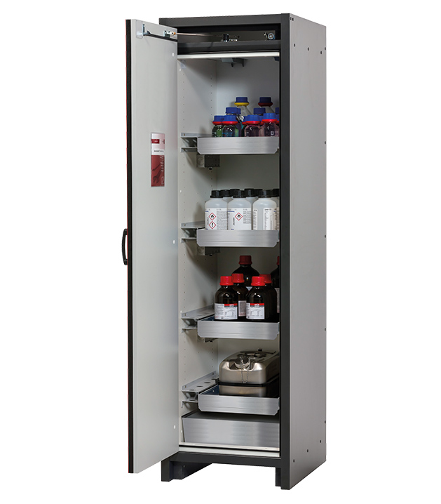 Tenga en cuenta los respectivos reglamentos y normas nacionales vigentes para el almacenamiento de sustancias peligrosas durante la configuración de un armario de seguridad. Si tiene alguna duda, los expertos de asecos le ayudarán encantados.