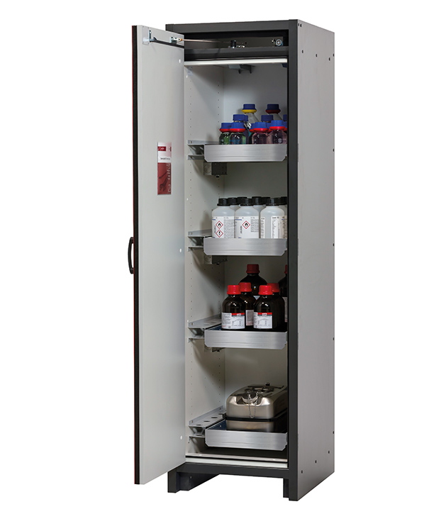 Tenga en cuenta los respectivos reglamentos y normas nacionales vigentes para el almacenamiento de sustancias peligrosas durante la configuración de un armario de seguridad. Si tiene alguna duda, los expertos de asecos le ayudarán encantados.