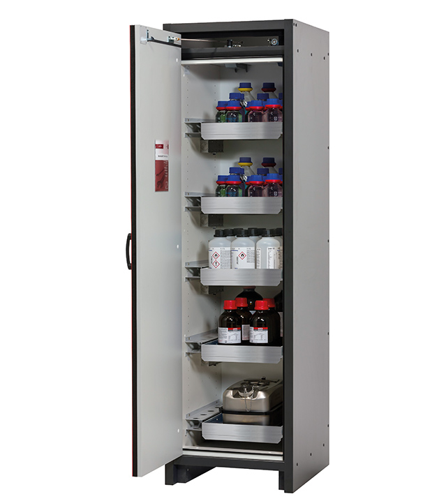 Tenga en cuenta los respectivos reglamentos y normas nacionales vigentes para el almacenamiento de sustancias peligrosas durante la configuración de un armario de seguridad. Si tiene alguna duda, los expertos de asecos le ayudarán encantados.
