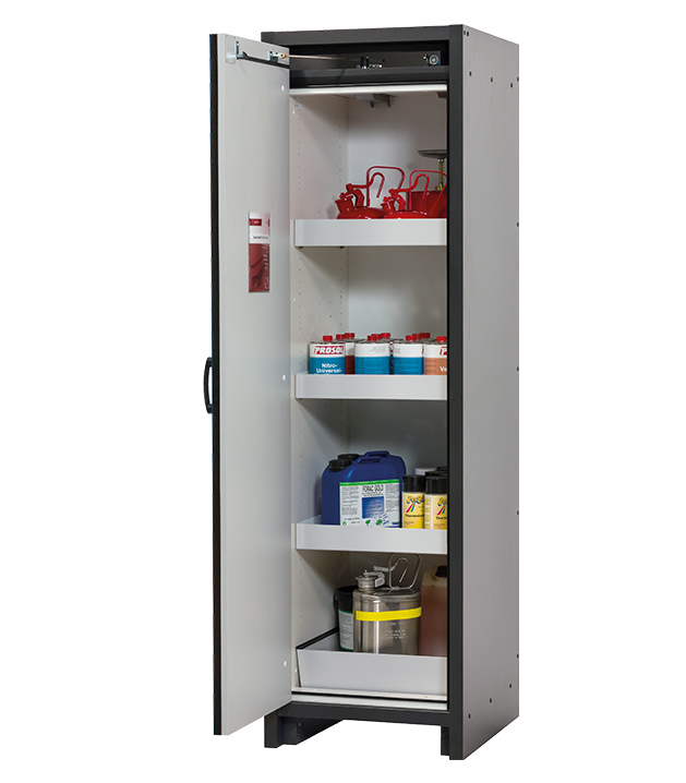 Tenga en cuenta los respectivos reglamentos y normas nacionales vigentes para el almacenamiento de sustancias peligrosas durante la configuración de un armario de seguridad. Si tiene alguna duda, los expertos de asecos le ayudarán encantados.