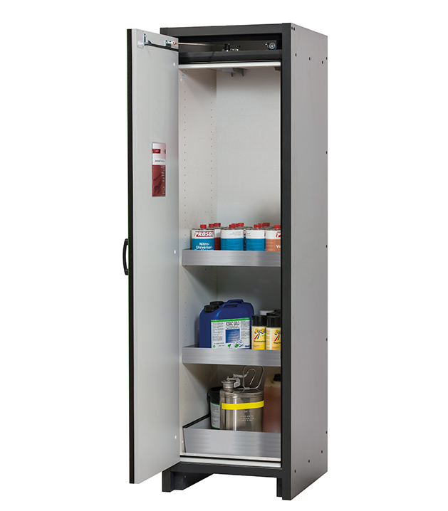 Tenga en cuenta los respectivos reglamentos y normas nacionales vigentes para el almacenamiento de sustancias peligrosas durante la configuración de un armario de seguridad. Si tiene alguna duda, los expertos de asecos le ayudarán encantados.