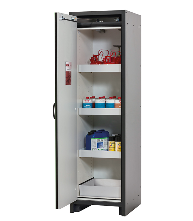 Tenga en cuenta los respectivos reglamentos y normas nacionales vigentes para el almacenamiento de sustancias peligrosas durante la configuración de un armario de seguridad. Si tiene alguna duda, los expertos de asecos le ayudarán encantados.
