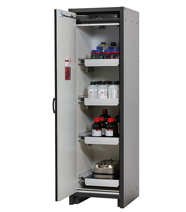 Tenga en cuenta los respectivos reglamentos y normas nacionales vigentes para el almacenamiento de sustancias peligrosas durante la configuración de un armario de seguridad. Si tiene alguna duda, los expertos de asecos le ayudarán encantados.