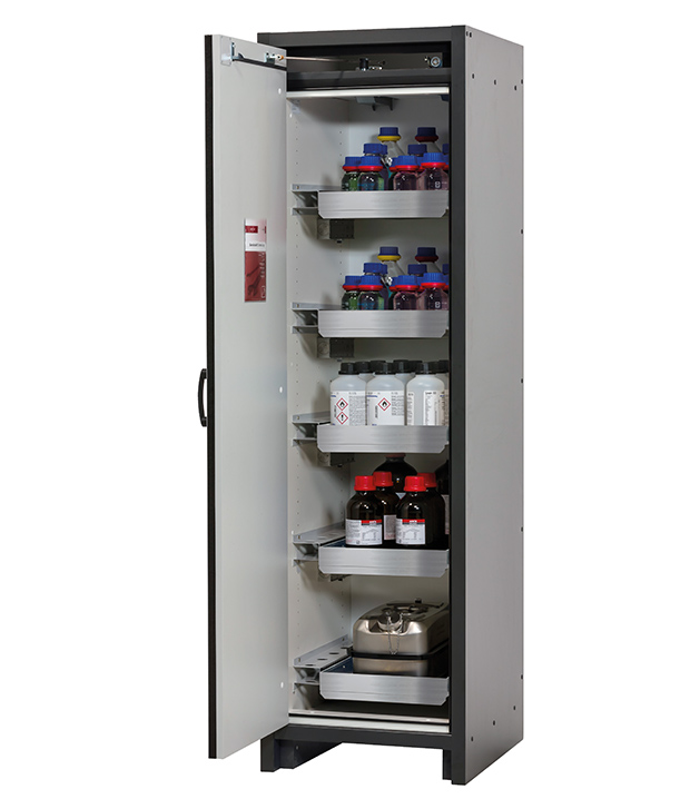 Tenga en cuenta los respectivos reglamentos y normas nacionales vigentes para el almacenamiento de sustancias peligrosas durante la configuración de un armario de seguridad. Si tiene alguna duda, los expertos de asecos le ayudarán encantados.
