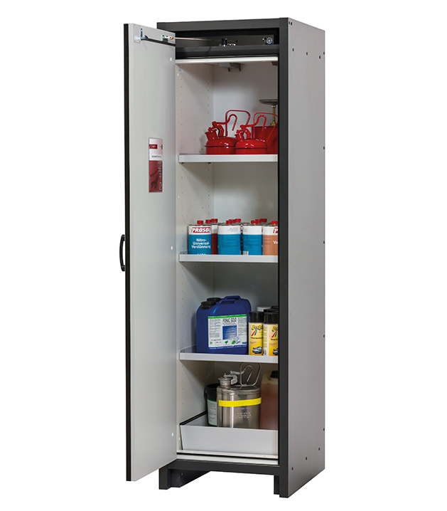Tenga en cuenta los respectivos reglamentos y normas nacionales vigentes para el almacenamiento de sustancias peligrosas durante la configuración de un armario de seguridad. Si tiene alguna duda, los expertos de asecos le ayudarán encantados.