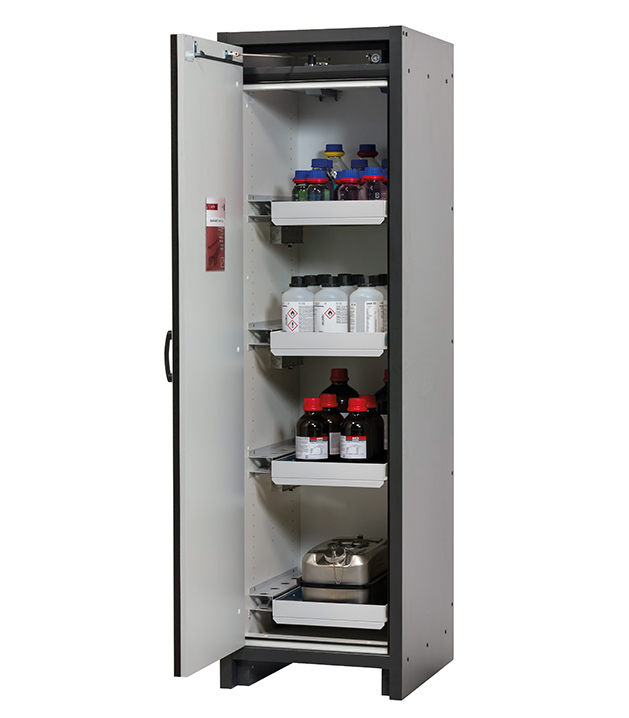 Tenga en cuenta los respectivos reglamentos y normas nacionales vigentes para el almacenamiento de sustancias peligrosas durante la configuración de un armario de seguridad. Si tiene alguna duda, los expertos de asecos le ayudarán encantados.