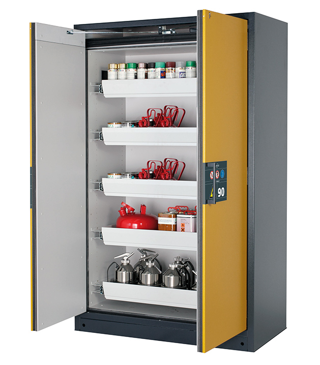 Tenga en cuenta los respectivos reglamentos y normas nacionales vigentes para el almacenamiento de sustancias peligrosas durante la configuración de un armario de seguridad. Si tiene alguna duda, los expertos de asecos le ayudarán encantados.