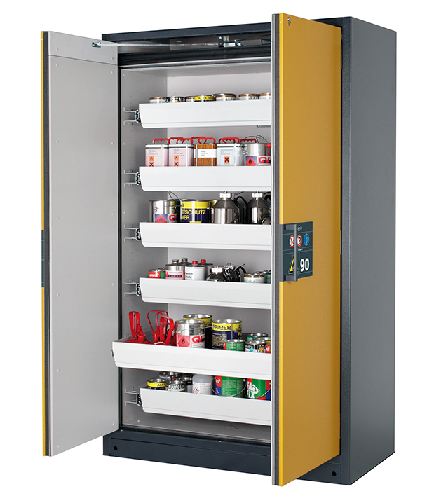 Tenga en cuenta los respectivos reglamentos y normas nacionales vigentes para el almacenamiento de sustancias peligrosas durante la configuración de un armario de seguridad. Si tiene alguna duda, los expertos de asecos le ayudarán encantados.