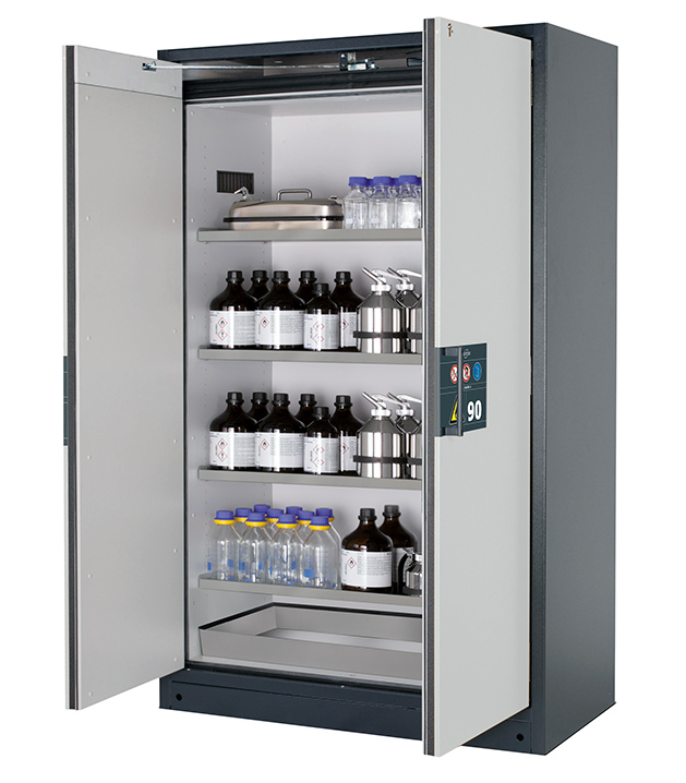 Tenga en cuenta los respectivos reglamentos y normas nacionales vigentes para el almacenamiento de sustancias peligrosas durante la configuración de un armario de seguridad. Si tiene alguna duda, los expertos de asecos le ayudarán encantados.