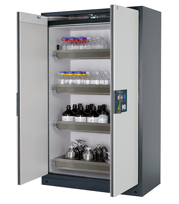 Tenga en cuenta los respectivos reglamentos y normas nacionales vigentes para el almacenamiento de sustancias peligrosas durante la configuración de un armario de seguridad. Si tiene alguna duda, los expertos de asecos le ayudarán encantados.