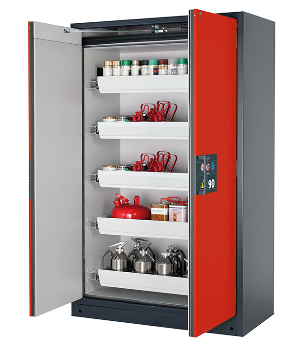 Tenga en cuenta los respectivos reglamentos y normas nacionales vigentes para el almacenamiento de sustancias peligrosas durante la configuración de un armario de seguridad. Si tiene alguna duda, los expertos de asecos le ayudarán encantados.