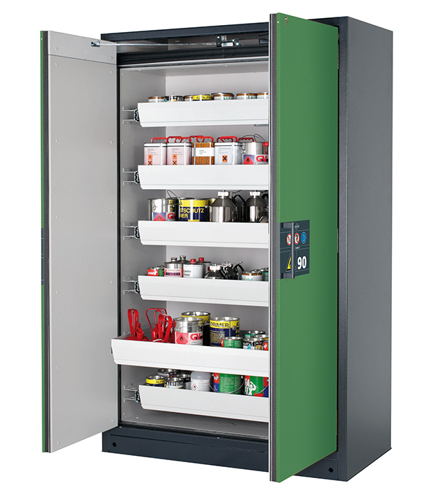 Tenga en cuenta los respectivos reglamentos y normas nacionales vigentes para el almacenamiento de sustancias peligrosas durante la configuración de un armario de seguridad. Si tiene alguna duda, los expertos de asecos le ayudarán encantados.