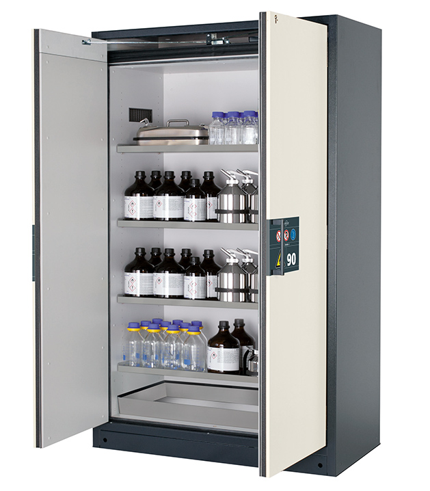 Tenga en cuenta los respectivos reglamentos y normas nacionales vigentes para el almacenamiento de sustancias peligrosas durante la configuración de un armario de seguridad. Si tiene alguna duda, los expertos de asecos le ayudarán encantados.