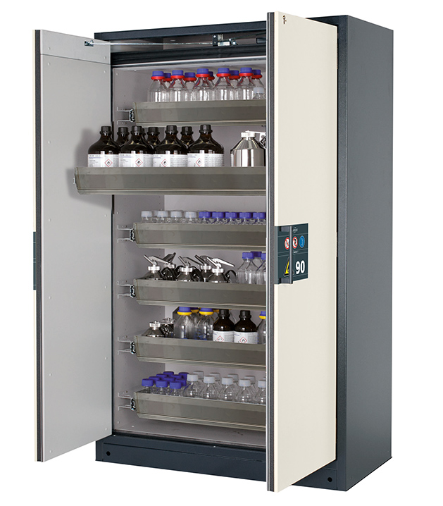 Tenga en cuenta los respectivos reglamentos y normas nacionales vigentes para el almacenamiento de sustancias peligrosas durante la configuración de un armario de seguridad. Si tiene alguna duda, los expertos de asecos le ayudarán encantados.