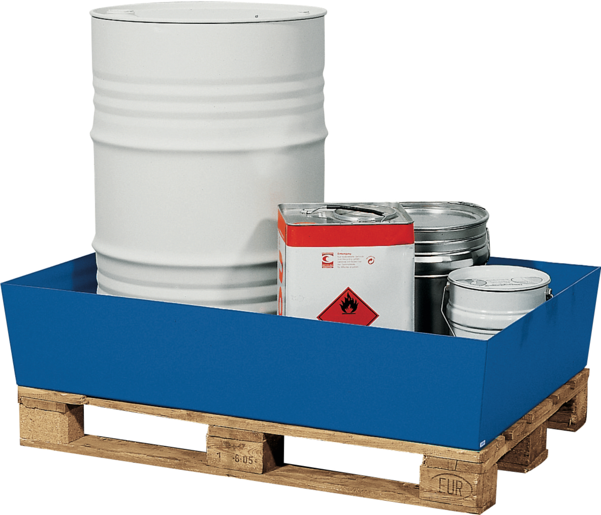 - Capacidad de carga: para 1 bidón 200 l + envases pequeños